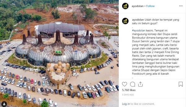 "Sudah dolan ke tempat yang satu ini belum, guys? Ayo dolan ke sini. Tempat ini mengusung konsep dari stupa Candi Borobudur, di mana bangunan utama Dusun Semilir terdiri dari 7 stupa yang menjadi satu. Lantai satu berisi pusat oleh-oleh jajanan, craft, beserta batik dan lantai 2 menjadi Fine Dining Resto. Dan, yang tak kalah menarik, di belakang bangunan utama terdapat Jembatan Senggol berisi kuliner kaki lima yang menghubungkan bangunan utama (stupa) dengan Sepoi-Sepoi Foodcourt yang ada di bawah," tulis Instagram @ayodolan, dikutip Minggu (23/6/2019).