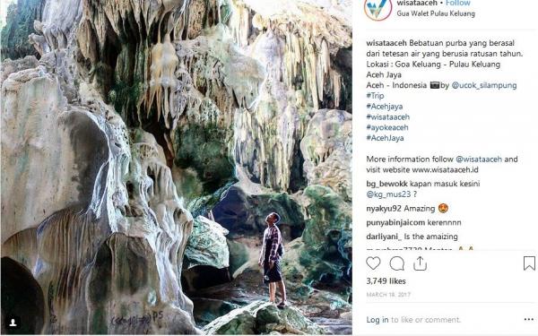 "Bebatuan purba yang berasal dari tetesan air yang berusia ratusan tahun. Lokasi: Goa Keluang - Pulau Keluang, Aceh Jaya," demikian tulis Instagram @Infoflashlight, dikutip Selasa (11/12/2018).