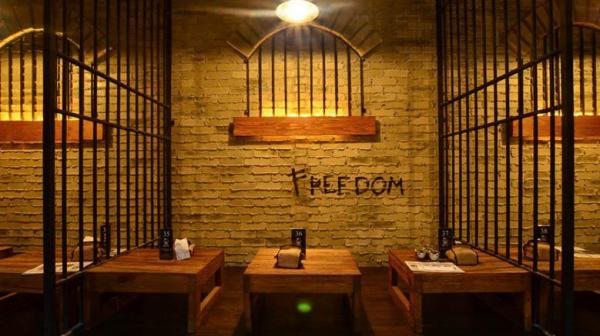 Berada di kafe ini, Anda akan diajak merasakan seperti tahanan penjara. Kafe didesain mirip sel penjara. Buku menunya terbuat dari koran dan pelayannya memakai baju garis-garis hitam putih mirip narapidana.