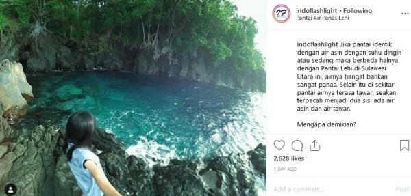 "Pantai Lehi terletak di sekitar kaki Gunung Api Karangetang yang masih aktif. Karena uap panas, sepanjang garis Pantai Lehi terasa hangat, bahkan panas. Jika sobat ingin mandi di tempat ini, telah disediakan kolam alami dengan suhu hangat. Dilarang mandi di sembarang tempat, karena di beberapa titik, suhu air bisa sangat panas. Bahkan bisa digunakan untuk merebus telur," tulis Instagram @Indoflashlight, dikutip Selasa (14/5/2019).