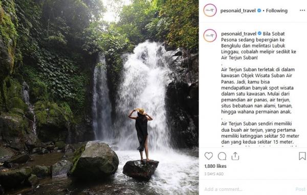 "Air Terjun Suban sendiri memiliki dua air terjun, yang pertama memiliki ketinggian sekitar 50 meter, dan yang kedua sekitar 15 meter. Suasana sekitar air terjun sangatlah sejuk. Di sekelilingnya juga tumbuh tanaman khas hutan hujan tropis dengan sedikit hiasan dari bebatuan di aliran airnya. Bila malas basah-basahan, Anda tetap puas hanya dengan berlama-lama di dekat Air Terjun Suban. Udara segarnya itu, lho!" tulis Instagram @Pesonaid_travel, dikutip Selasa (3/9/2019).
