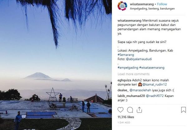 "Menikmati suasana sejuk pegunungan dengan balutan kabut dan pemandangan alam memang menyegarkan ya. Siapa saja nih yang sudah ke sini?, dikutip Instagram @WisataSemarang, Kamis (8/11/2018).