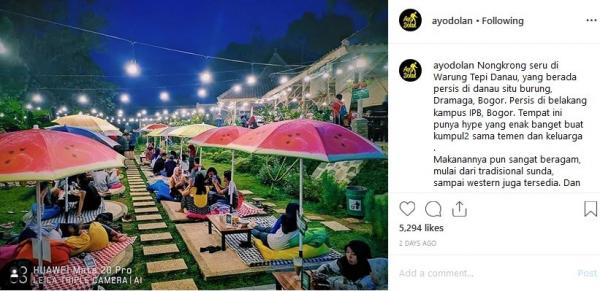 Warung Tepi Danau memang sedang viral di media sosial. Lokasinya dekat dengan Institut Pertanian Bogor (IPB). Tepat di belakangnya. Sekitar 100 meter. Jaraknya yang berdekatan dengan kampus membuat Warung Tepi Danau banyak dikunjungi mahasiswa. Selain makan, biasanya mereka ke sini untuk mengerjakan tugas kuliah. Ada juga yang hanya sekadar berfoto ria.