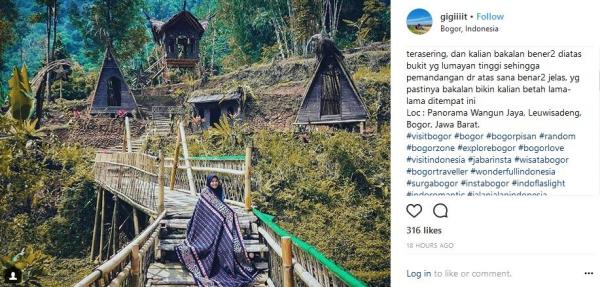 Panorama Wangun Jaya memang baru dibangun, tidak heran jika tempat ini banyak diincar wisatawan. Melalui postingan instagram @gigiiiit, dia tampak berpose di salah satu spot paling ikonik di sana.