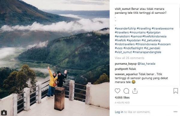 "Benar atau tidak Menara Pandang Tele, titik tertinggi di Samosir?," tulis Instagram @visit_Sumut, dikutip Jumat (19/10/2018).
