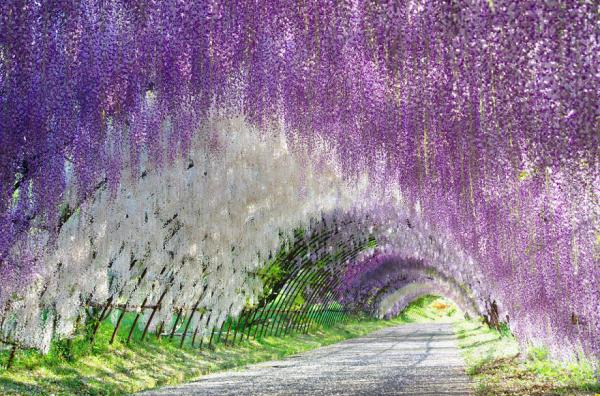 Terowongan ini menjadi tempat wisata paling digemari di Jepang. Bunga-bunganya bermekaran indah, di sepanjang terowongan. Untuk menuju ke sana, cukup menempuh waktu perjalanan lima jam dari Tokyo, menggunakan kereta api cepat. Bunga wisteria, biasanya mekar pada akhir April sampai pertengahan Mei.