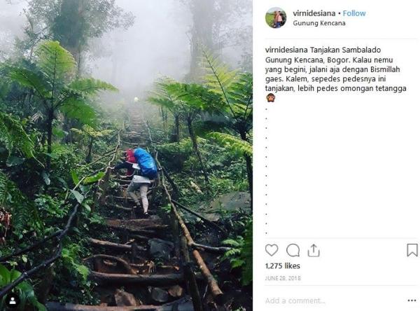 "Tanjakan Sambalado Gunung Kencana, Bogor. Kalau nemu yang begini, jalani aja dengan Bismillah gaes. Kalem, sepedes pedesnya ini tanjakan, lebih pedes omongan tetangga," tulis Instagram @Virnidesiana, dikutip Senin (11/2/2019).