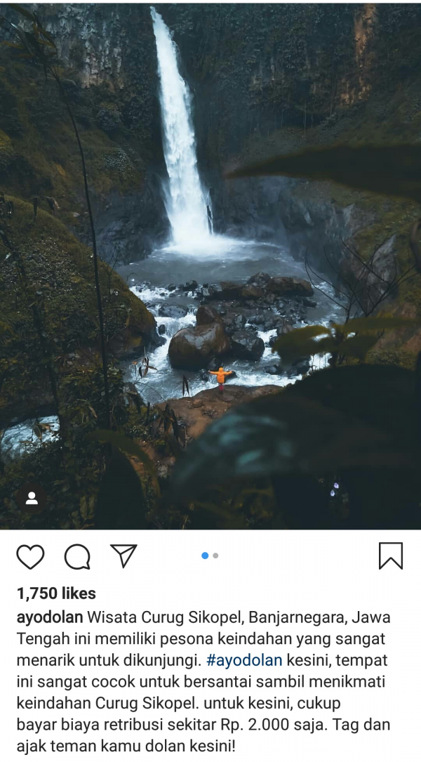 "Wisata Curug Sikopel, Banjarnegara, Jawa Tengah ini memiliki pesona keindahan yang sangat menarik untuk dikunjungi. Ayo dolan ke sini. Tempat ini sangat cocok untuk bersantai sambil menikmati keindahan Curug Sikopel. Untuk ke sini, cukup bayar biaya retribusi sekitar Rp2.000 . Tag dan ajak teman kamu dolan ke sini! Foto dolan dari @irmanzaenudin In frame : @candu_melangkah," tulis Instagram @ayodolan, dikutip Minggu (29/9/2019).