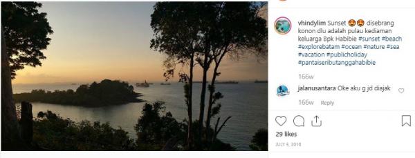 "Sunset di seberang, konon dlu adalah pulau kediaman keluarga Bpk Habibie" tulis Instagram @vhindylim, Kamis (12/9/2019).