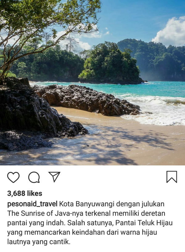 "Di sini, Anda bisa berenang dan snorkeling. Panorama sekitar pantai masih terlihat sepi dengan dikelilingi rimbunnya hutan. Teluk Hijau atau kerap dikenal Green Bay ini dulunya hanya bisa dinikmati dari jauh oleh wisatawan yang mengunjungi Taman Nasional Meru Betiri menuju Pantai Sukamade. Kini, Anda bisa langsung ke sini. Namun harus menempuh perjalanan yang cukup memakan tenaga. Kalau Anda suka berpetualang, bisa coba untuk trekking menuju Teluk Hijau. Dijamin menyenangkan," tulis Instagram @pesonaid_travel, dikutip Kamis (25/7/2019).