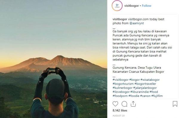 "Gak banyak orang yang tahu kalau di kawasan Puncak Bogor ada Gunung Kencana yang view-nya keren, alamnya juga masih belum banyak tersentuh. Menuju ke sini juga kalian bisa nikmati Talaga Saat. Dari salah satu sisi di Gunung Kencana, kalian bisa melihat puncak Gunung Gede dan kawah di sebelahnya," tulis Instagram @VisitBogor, Rabu (14/8/2018).