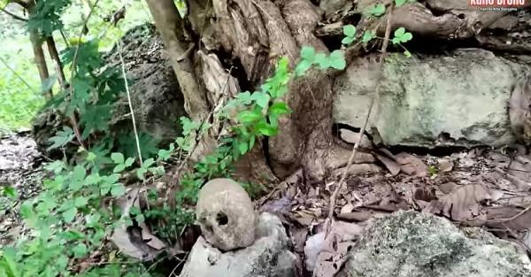“Masih membentuk yang asli, tengahnya cekong. Seandainya gak ada tanahnya, itu berbentuk nyekong (perahu)," ujar Kuno Brono sambil memperlihatkan bagian tengah batu, yang berbentuk cekung seperti perahu.