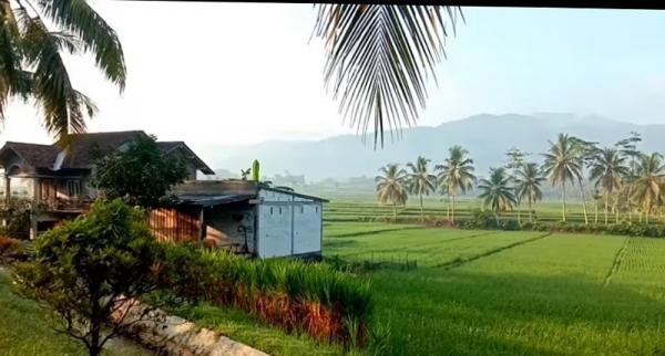 "Pemandangan depan rumah sawah dan pegunungan yang indah, seperti lukisan. Penduduk yang tinggal di sini juga bahagia. Orang kota wajib lihat pemandangan ini," kata dia.