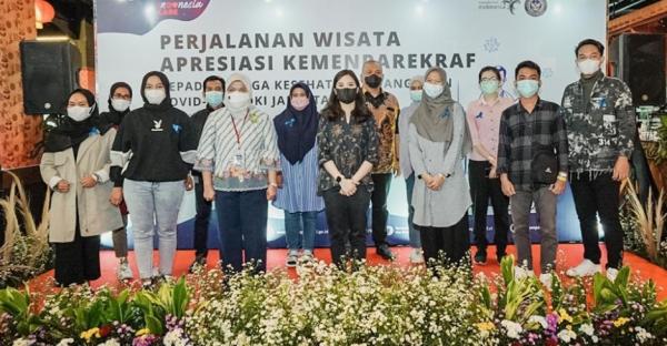 Angela mengatakan pihaknya menggelar acara khusus sebagai bentuk ungkapan rasa terima kasih dan apresiasi Kemenparekraf atas kerja keras para tenaga kesehatan sebagai garda terdepan dalam menangani pandemi Covid-19 di DKI Jakarta.