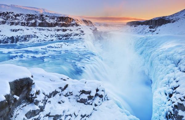 Jika Anda sangat menyukai wisata air terjun, kunjungi air terjun Gullfoss. Air yang mengalir ke bawah jika terkena sinar matahari akan bercahaya seperti emas.