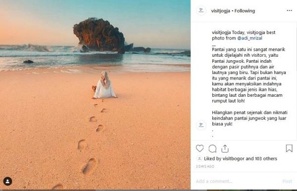 "Pantai yang satu ini sangat menarik untuk dijelajahi nih, visitors, yaitu Pantai Jungwok. Pantai indah dengan pasir putihnya dan air lautnya yang biru. Tapi bukan hanya itu yang menarik dari pantai ini, kamu akan menyaksikan indahnya habitat berbagai jenis ikan hias, bintang laut dan berbagai macam rumput laut. Hilangkan penat sejenak dan nikmati keindahan pantai jungwok yang luar biasa yuk!" tulis Instagram @visitjogja, dikutip Jumat (24/5/2019).
