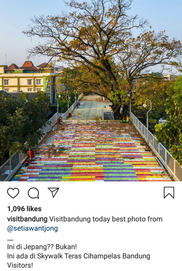 "Ini di Jepang?? Bukan! Ini ada di Skywalk Teras Cihampelas Bandung, visitors! Di Jalan Cihampelas No.162, Cipaganti, Kecamatan Coblong, Kota Bandung, Jawa Barat," tulis Instagram @visitbandung, dikutip Minggu (14/7/2019).