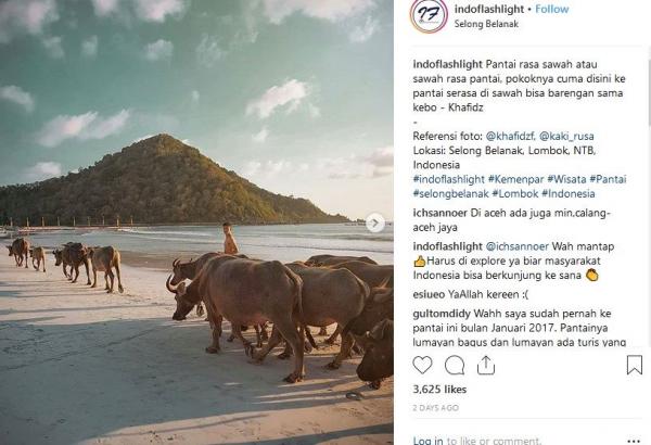 "Pantai rasa sawah atau sawah rasa pantai, pokoknya cuma di sini ke pantai serasa di sawah bisa barengan sama kebo - Khafidz," tulis Instagram @indoflashlight dikutip Sabtu (20/10/2018).