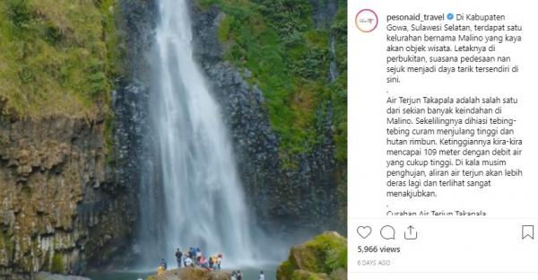 Serunya wisata petualangan di air terjun Takapala. (Foto: Instagram)