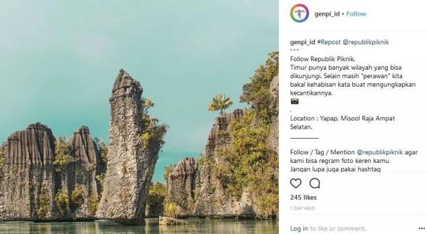 "Timur punya banyak wilayah yang bisa dikunjungi. Selain masih 'perawan' kita bakal kehabisan kata buat mengungkapkan kecantikannya," tulis Instagram Genpi_id, dikutip Sabtu (9/6/2018).