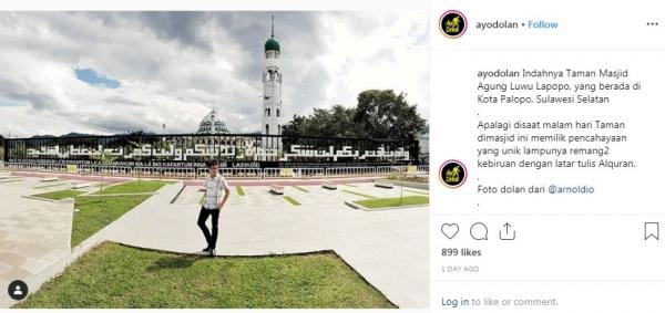 "Indahnya Taman Masjid Agung Luwu Polopo, yang berada di Kota Palopo, Sulawesi Selatan. Apalagi di saat malam hari, Taman di masjid ini memilik pencahayaan yang unik. Lampunya remang-remang kebiruan dengan latar tulis Al-Qur'an," tulis Instagram @ayodolan, dikutip Sabtu (18/5/2019).