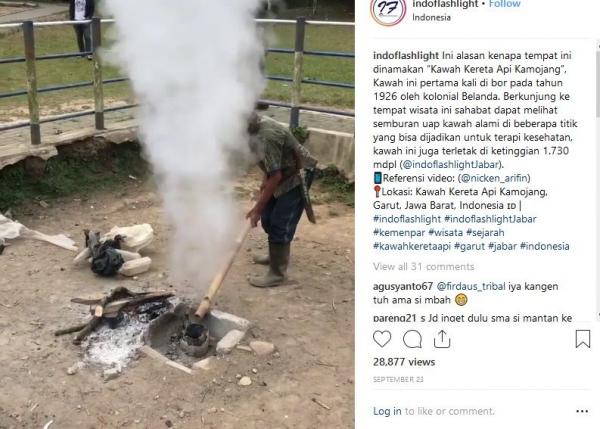 "Ini alasan kenapa tempat ini dinamakan Kawah Kereta Api Kamojang, Kawah ini pertama kali di bor pada 1926 oleh kolonial Belanda. Berkunjung ke tempat wisata ini, sahabat dapat melihat semburan uap kawah alami di beberapa titik yang bisa dijadikan untuk terapi kesehatan, kawah ini juga terletak di ketinggian 1.730 mdpl," tulis Instagram @Indoflashlight dikutip Kamis (4/10/2018).