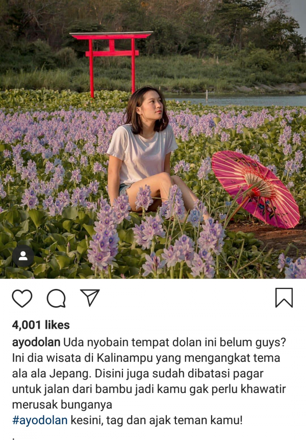 "Udah nyobain tempat dolan ini belum guys? Ini dia wisata di Kalinampu yang mengangkat tema ala ala Jepang. Di sini juga sudah dibatasi pagar untuk jalan dari bambu jadi kamu gak perlu khawatir merusak bunganya. #ayodolan ke sini, tag dan ajak teman kamu! Dusun Kalinampu, Pundong, Bantul, Yogyakarta. Foto dolan dari @rizkakhadafi," tulis Instagram @ayodolan, dikutip Kamis (24/10/2019).