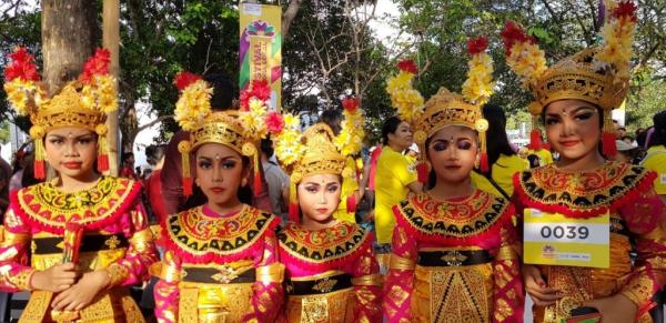 Anak-anak perempuan berpakaian adat khas lokal saat mengikuti FPL di Kota Denpsar, Bali, 23 September lalu. (Foto: iNews.id/Dok.)