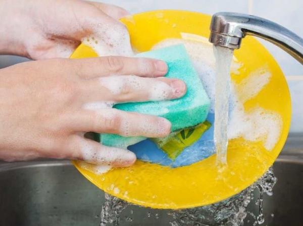Pencucian dilakukan dengan air sabun yang banyak. Ini adalah langkah penting menjaga dapur tetap sehat. Membuang kotoran dan sisa makanan dari piring, panci, dan wajan hanyalah langkah awal.