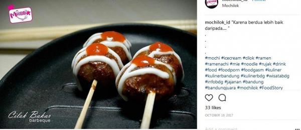 Pilihan cilok lainnya adalah Kafe Mochilok, yang terlokasi di Jalan Sekeloa No.31, Bandung. Berbeda dengan cilok lainnya, kafe ini menyajikan cilok dengan toping mozzarella dan tidak dibumbui kacang. Ciloknya dibakar dan tidak di kukus. Cilok dibakar di atas pembakaran daging selama tiga menit, hingga berubah warna menjadi kecokelatan. Saat dibakar, cilok diolesi bumbu barbeque. Cilok enak di Bandung ini, dihidangkan bersama saus pedas, mayonaise, dan cracker.
