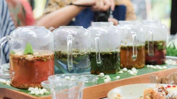 Jika sudah menikmati makanan nusantara yang lezat, jangan lewatkan untuk mencicipi herbal infusion. Ada tujuh warna yang ditawarkan. Namun, ada lima warna favorit rasanya tidak kalah dengan minuman kekinian. Rasanya segar tidak ada campuran, karena hanya disajikan dari rempah-rempah pilihan seperti jahe, lemon, daun mint, sereh, kayu manis dan lainnya. Minuman ini sangat sehat dan menyegarkan.