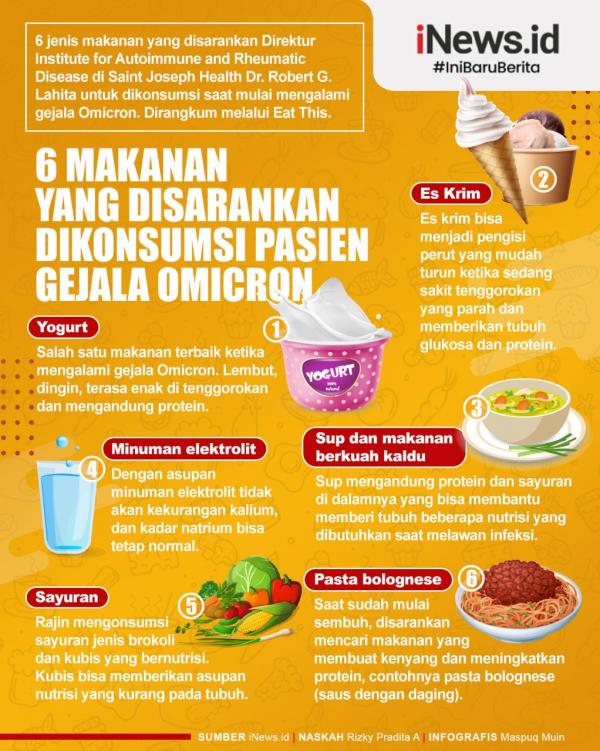 Lantas, apa saja makanan yang disarankan bagi pasien Covid-19? Berikut enam jenis makanan yang disarankan Dr. Robert untuk dikonsumsi saat Anda mulai mengalami gejala Omicron, agar tubuh tetap ternutrisi dengan baik. Dirangkum melalui Eat This.