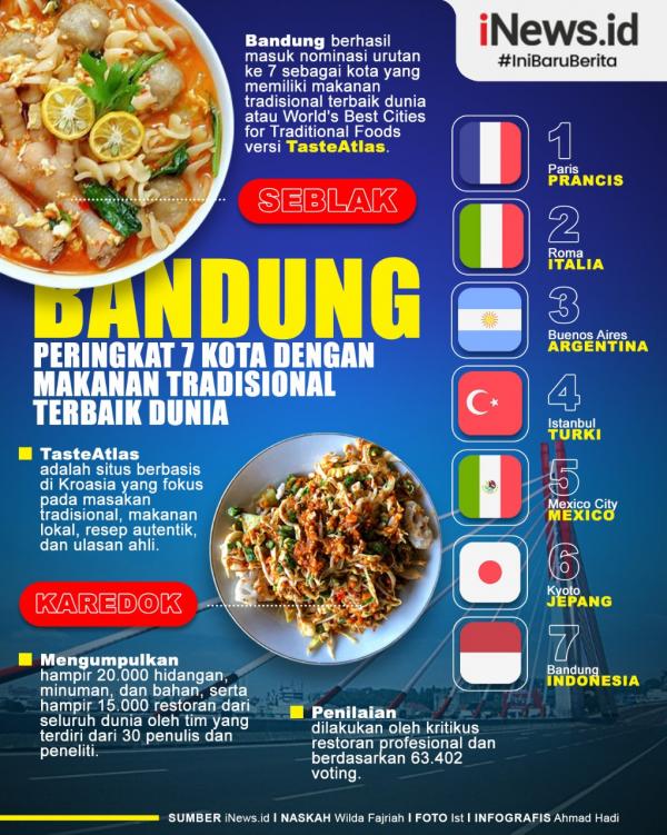 Bandung Peringkat 7 Kota dengan Makanan Tradisional Terbaik di Dunia