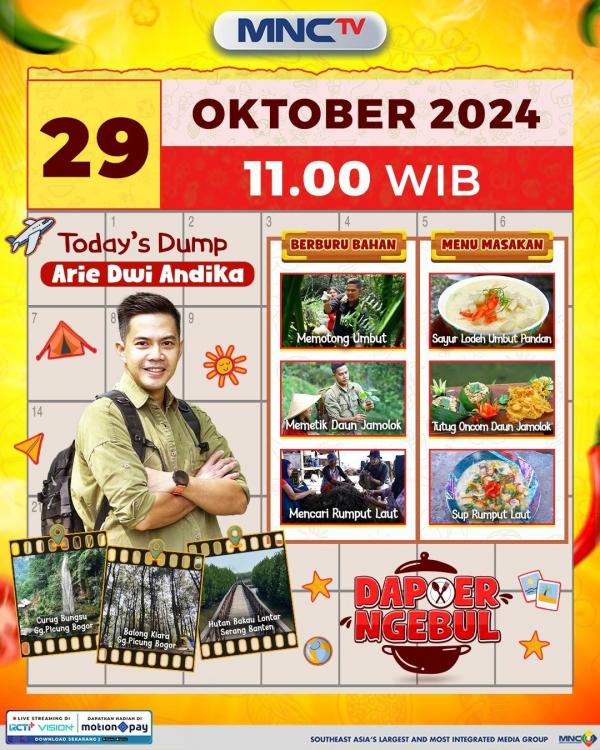 Saksikan petualangan memasak Chef Arie Andika di program terbaru Dapoer Ngebul, pada Selasa, 29 Oktober 2024, pukul 11.00 WIB hanya di MNCTV Selalu di Hati.