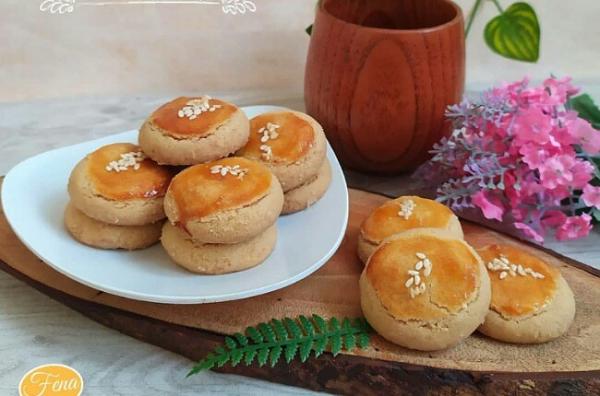 4. Keluarkan kue, oles permukaan dengan kuning telur. Beri taburan wijen/kacang cincang. Panggang lagi 3-5 menit. Keluarkan, dinginkan lalu simpan dalam toples.