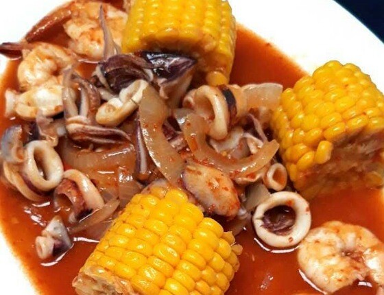 6. Masukkan semua bumbu pelengkap. Aduk-aduk. Masukkan jagung. Aduk-aduk lagi sampai kuah mengental. Koreksi rasa. Sajikan.