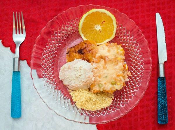 "Pada hari Natal, kami juga makan pastel nasi parmesan (yang merupakan paket kue renyah goreng yang diisi keju meleleh), daging sapi cincang, atau hati yang lembut dari kelapa sawit," katanya.
