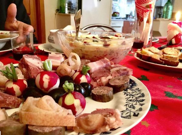 "Menu pertama kami adalah keju yang disajikan dengan tomat dan berbagai cold meats. Bagian paling meriah dari makanan kami adalah roti jeli dan kubis asin yang diisi dengan daging babi cincang. Setelah hidangan utama babi atau bebek, kami akan menyantap semangkuk sup. Di akhir hidangan, kami menikmati kue spesial yang mirip dengan panettone," tuturnya.