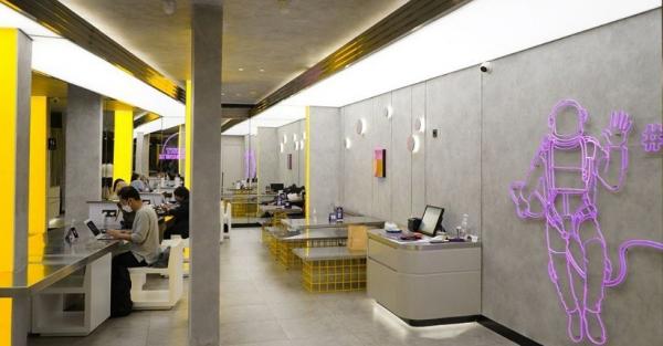 Saat singgah ke Moon Chicken Station Senopati, pelanggan akan merasakan nuansa futuristik yang kuat di lantai satu. Seperti perlengkapan furnitur yang berwarna perak, lampu dengan warna kuning dan ungu khas Moon Chicken by Hangry dan steker listrik yang dapat keluar otomatis dari tengah meja.