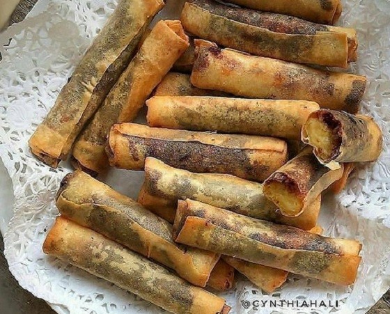 4. Lipat, gulung, lem pinggirnya dengan putih telur. Siap digoreng.