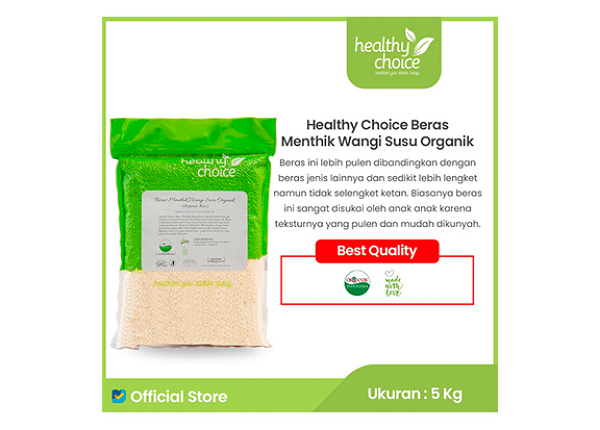 Healthy Choice Beras Menthik Wangi Susu Organik adalah beras asli Indonesia tanpa rekayasa genetik yang memiliki warna putih seperti susu, serupa dengan ketan atau padi yang masih muda saat dipanen.