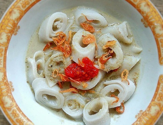 Sajian ini paling enak disantap dengan kuah gurih, yang diracik dari santan dan aneka bumbu seperti ketumbar kencur, kunyit, lengkuas, bawang putih dan kemiri.