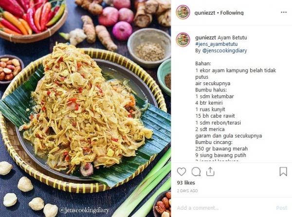 Jika kali ini Anda sedang ingin mencicipi betutu, cobalah membuat ayam betutu. Ayam yang disuwir-suwir, kemudian diberi bumbu khas Bali. Cara membuatnya sangat mudah. Ingin tahu resep lengkap dan cara membuatnya? Berikut ulasannya seperti dikutip melalui Instagram @guniezzt, Senin (7/10/2019).