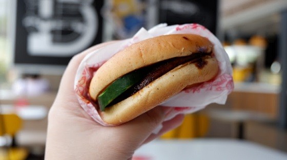 Mencicipi menu burger nasi goreng (Foto : Ist)