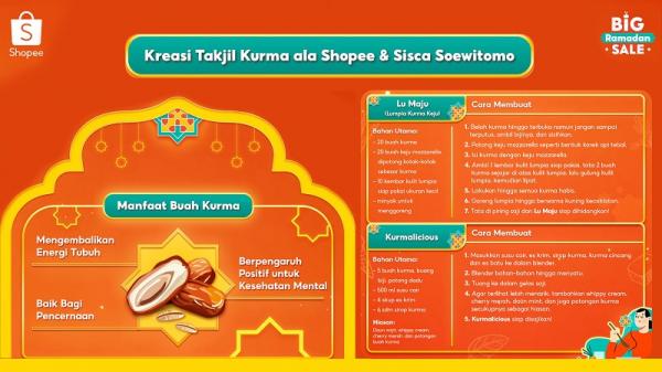 Dalam rangka kemeriahan kampanye Shopee Big Ramadan Sale, Shopee bersama Sisca Soewitomo merekomendasikan kurma sebagai menu takjil Ramadan yang kaya manfaat bagi kesehatan tubuh, terlebih dapat dikreasikan dengan mudah untuk disajikan bersama keluarga dirumah. Yuk, mari kita simak beberapa manfaat dari kurma dibawah ini!
