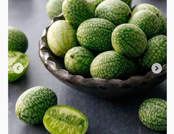 Buah Cucamelon, namanya. Buah kecil dan berbentuk bulat telur ini dianggap gabungan dari dua jenis buah yang ukurannya berbeda jauh, yaitu buah semangka yang besar dan mentimun yang kecil.
