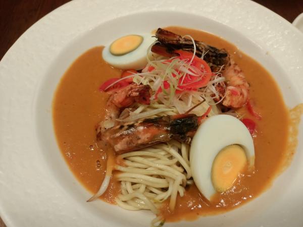 “Dia basic stylenya western, tapi kita tetap campur dengan bumbu Indonesia, bumbu kuning lalu dicampur dengan santan juga, dan ada rich dari tomatnya juga. Jadi rasa udangnya lebih berasa banget di sausnya,” kata Chef Adlar, salah satu chef di Maple & Oak.