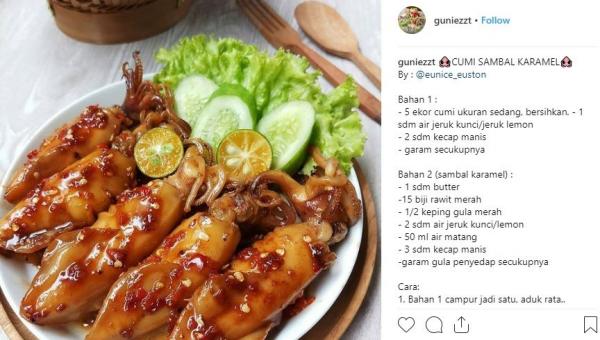 Ingin tahu resep dan cara membuat cumi sambal karamel? Berikut ulasannya seperti dikutip melalui Instagram @guniezzt, Selasa (30/4/2019).