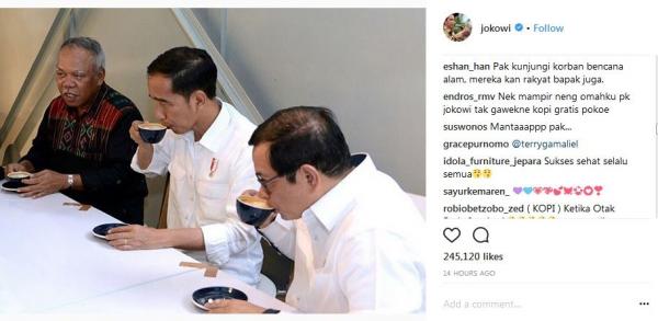 "Richardsiahaa: Ajak rakyat dong pak untuk bareng minum kopinya, jangan pejabat terus.. Tuhan berkati pak Jokowi dan sukses terus ya Pak Presiden"