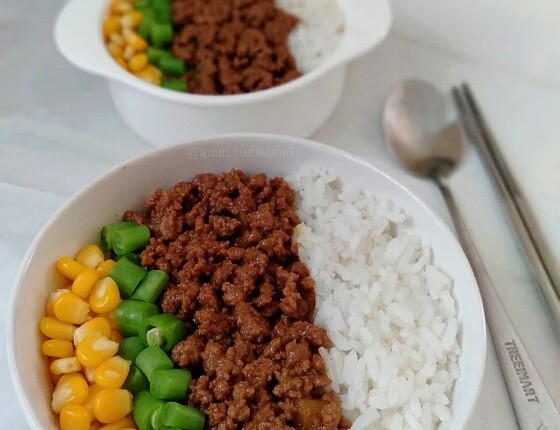 2. Panaskan margarin, masukkan bawang bombai, aduk sebentar, masukkan daging aduk sampai berubah warna.